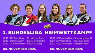 Der SuSC Müllenborn tritt bei seinem Heimwettkampf am 08. November mit dem SV Wickenberg direkt auf den Deutschen Meister des Saison 2023 und somit auf ein Schwergewicht der Szene. Am Sonntag, 09. November treffen die Müllenborber dann auf die Schützen der Ohligser SGem 75/03.