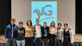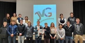 Mit der Wahl der Verantwortlichen für die Öffentlichkeitsarbeit ist das Vorstandsteam der Jugendvertretung Gerolstein (JVG) nun komplett. Ab sofort kümmern sich Mia Flohr und Finn Ehrhardt um die Kommunikation der JVG. Auch ein Logo haben Mitglieder entwickelt: Jasmin Framke und Tom Caspers hatten die Wort-Bildmarke bereits für die Teilnahme der JVG am Landesweiten Ehrenamtstag gestaltet.