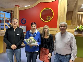 Fachbereichsleiter Bernd Schmitz, Marita Junker, Kita-Leiterin Steffi Götten, Personalratsvorsitzender Thomas Brost (v.l.)