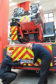 Übergabe der neuen DLA-K: Wehrleiter Sascha Löbens und Wehrführer Dirk Merkes (v.l.)