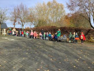 Am 06.11.2025 fand unsere diesjährige Martinsfeier in Birgel statt. Start war in der Kita in Lissendorf mit einem religionspädagogischen Angebot, das von den Kleinsten, unseren Spatzen-Kindern, zum Thema St. Martin vorbereitet wurde. Anschließend begaben sich alle zu einem Umzug nach Birgel. Der St. Martin – von einem Kind gespielt – lief voran. Alle Kinder und Erzieher unterstützen den St. Martin gesanglich mit Martins- und Laternenliedern. In Birgel angekommen, waren ein Feuer, Kakao und selbsgebackene Weckmänner vorbereitet. Nachdem sich alle gestärkt hatten und auf dem Spielplatz bei tollem Wetter noch spielen konnten, ging es dann geschlossen wieder in die Kita zurück.