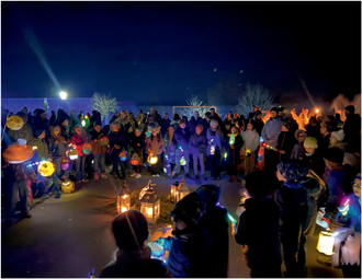 Wunderbar eingestimmt durch das Martinsspiel der 2. Klasse der Grundschule und die gemeinsamen ersten Martinslieder setzte sich der Martinsumzug begleitet vom Berndorfer Musikverein von der Kirche aus durch das Dorf in Bewegung. Viele schöne, selbstgebastelte Laternen leuchteten Martin auf seinem Pferd den Weg mit dem Blick zum Feuer auf dem Möschelberg. Anschließend kehrte Martin auf den Schulhof der Grundschule ein, auf dem die Kinder mit ihren Lehrer:innen, Eltern und Besuchern noch gemeinsam einige Martinslieder sangen, bevor die Wecken an die Kinder verteilt wurden. Die Dorfgemeinschaft ließ den Abend bei Glühwein, warmen Apfelsaft und Würstchen in geselliger Runde ausklingen. Die Schulelternpflegschaft übernahm wie jedes Jahr mit vielen helfenden Händen die Bewirtung. Vielen Dank dafür! Vielen Dank möchte die Schulgemeinschaft der Grundschule auch allen sagen, die durch den Kauf von Martinslosen es der Schule ermöglichen, für die Kinder immer wieder etwas Besonderes im Laufe des Schuljahres zu organisieren.