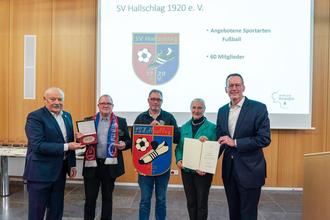 „Mit dieser hohen Auszeichnung wird das mehr als 100-jährige ehrenamtliche Engagement im Verein und damit auch für unsere Dörfer gewürdigt. Wir freuen uns, dass der SV Nohn nun eine solche Ehrung erfahren darf und gratulieren herzlich dazu“, so Bernhard Jüngling, Ortsbürgermeister von Nohn. „Eine solch hohe Auszeichnung ist ein Tag, an dem man sich an die schönen Momente erinnert. In diesem Sinne wünscht die Gemeinde Hallschlag dem Verein ein glückliches Händchen für die Zukunft“, ergänzt Dirk Weicker, Ortsbürgermeister von Hallschlag.