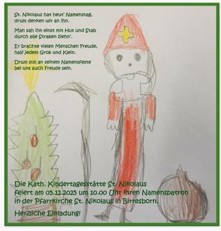 Die Katholische Kindertagesstätte St. Nikolaus feuert am 05.12.2025 um 10:00 Uhr ihren Namenspatron in der Pfarrkiche St. Nikolaus in Birresborn. Herzliche Einladung!