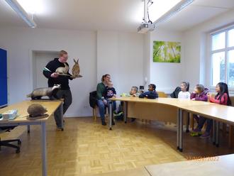 Nach einem kleinen Rundgang durchs Haus haben wir uns im Besprechungsraum versammelt und Lukas Kersting hat uns nacheinander viele Tiere aus unseren heimischen Wäldern vorgestellt.