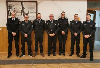 Jürgen Metzen wurde nachträglich die Urkunde für 25 Jahre aktive Zugehörigkeit der Feuerwehr überreicht. Den Kameraden Tom Heinz, Lukas Heintz, Philipp Rieder und Andreas Heinz erhielten ihre Urkunden zum Truppmann.