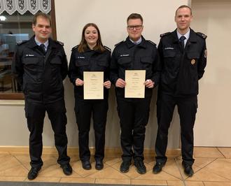 Auch Beförderungen standen auf der Agenda. Elisa Rechs wurde zur Feuerwehrfrau und Philipp Schegner zum Feuerwehrmann befördert.