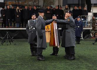 102 Rekrutinnen und Rekruten des Informationstechnikbataillons 281 (ITBtl 281) in Gerolstein leisteten ihren Fahneneid. Nach einem Gelöbnisgottesdienst fand die Gelöbnis-Zeremonie auf dem Hillesheimer Sportplatz statt. Dort begrüßte Oberstleutnant Michael Auch alle Anwesenden.