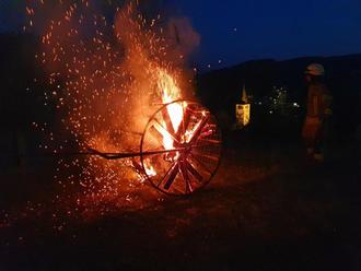Am Samstag vor dem „Scheef-Sunnech“ wird auch in Neroth das mit Stroh gebundene und gestopfte Feuerrad am Heltenberg vom Elling aus rollen.