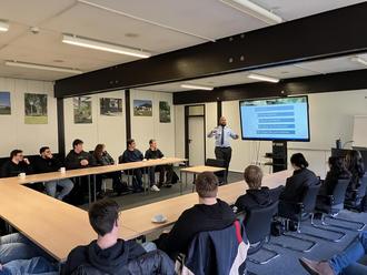 Erstes und sozusagen auch Hauptziel der Exkursion war die Hardthöhe, der erste Dienstsitz des Bundesministeriums der Verteidigung. Dort wurde die Gruppe bereits von Hauptmann Raphael Schewiola erwartet, der als Jugendoffizier zu der Veranstaltung eingeladen hatte. Sinn und Zweck dieses Treffens war aber keineswegs etwa Werbung für einen Dienst bei der Bundeswehr – Hauptmann Schewiola legte Wert darauf, das festzustellen. Sondern es ging um die Aufgaben und den Zustand der Bundeswehr. Die Schülerinnen und Schüler hatten dabei Gelegenheit, eine Reihe von Fragen zu stellen. Themen waren die finanzielle und technische Ausstattung der deutschen Armee genauso wie deren Zielsetzungen, die Rolle der Nato, die aktuelle weltpolitische Situation, bis hin zur Frage einer Wiedereinführung der Wehrpflicht. Eine Frage, die von den – möglicherweise eines Tages direkt betroffenen – Jugendlichen durchaus kontrovers diskutiert wurde.