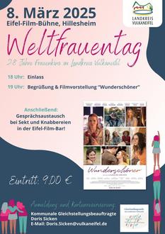 Samstag, 08. März 2025, Eifel-Film-Bühne Hillesheim, Aachener Straße 15, 18:00 Uhr Einlass, 19:00 Uhr Begrüßung und Filmstart, Ausklang in der Eifel-Film-Bar bei Sekt und Knabbereien