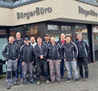 Mitglieder der Hausmeister-Teams der Verbandsgemeinde Gerolstein (nicht alle auf dem Foto) bei einer Schulung mit Edgar Steffes (2.v.l.) und Johannes Dahm (2.v.r.) vom Fachbereich Bauen und Umwelt. Neu dabei ist Marco Fiedler (3.v.l.).