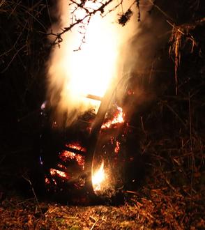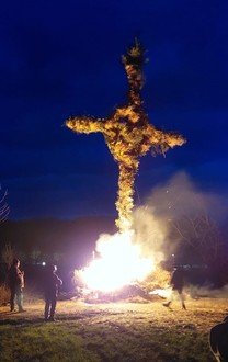 In manchen Orten werden die Hütten oder Burgen auch in Form eines Kreuzes verbrannt.