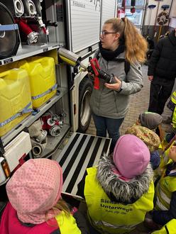 Im letzten Kindergartenjahr haben sich die "Großen Entdecker" der Integrativen Kita Hillesheim intensiv mit dem wichtigen Thema Brandschutzerziehung beschäftigt. Ziel des Projektes war es, den Kindern altersgerecht zu vermitteln, wie sie sich im Brandfall richtig verhalten und wie sie selbst zur Sicherheit beitragen können. Unterstützt wurden sie dabei von Kerstin Cornesse, Brandschutzerzieherin des Kreisverbands Vulkaneifel. Gemeinsam wurde erarbeitet, was zu tun ist, wenn es brennt, welche Notrufnummer gewählt werden muss und wie ein Notruf richtig abgesetzt wird. Auch kleine Experimente standen auf dem Programm. Dabei konnten die "Großen Entdecker" beobachten, wie Feuer entsteht und warum Vorsicht im Umgang mit Feuer so wichtig ist. Besonders spannend war es, die persönliche Schutzausrüstung der Feuerwehr kennenzulernen: Helm, Jacke, Handschuhe und Atemschutzgerät wurden genau unter die Lupe genommen. Den krönenden Abschluss bildete ein gemeinsamer Besuch bei der Freiwilligen Feuerwehr Hillesheim. Vor Ort durften die Kinder ein echtes Feuerwehrauto erkunden und sogar darin Platz nehmen. Neugierig wurde untersucht, welche Geräte und Schläuche verladen sind, wo sich die Feuerwehrleute im Einsatzfall umziehen und wo eingehende Notrufe ankommen. Die Integrative Kita Hillesheim bedankt sich herzlich bei allen Beteiligten - insbesondere bei Kerstin Cornesse - für die engagierte Unterstützung und die anschauliche Vermittlung dieses wichtigen Themas.