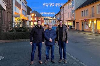 Begutachteten gemeinsam die neue LED-Weihnachtsbeleuchtung in der Innenstadt in Speicher: (v.l.) Christian Nathem (Westenergie), Stadtbürgermeister Erhard Hirschberg sowie Bürgermeister Marcus Konrad.