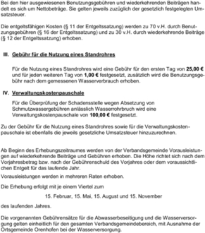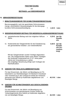 Die Gebühren- und Beitragssätze für die Bereiche Abwasserbeseitigung und Wasserversorgung werden entsprechend der Anlage 2 zu dieser Haushaltssatzung festgesetzt.