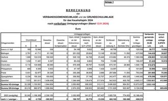 Gemäß § 32 Abs. 2 Landesfinanzausgleichsgesetz (LFAG), in der aktuellen Fassung, erhebt die Verbandsgemeinde von allen Ortsgemeinden und der Stadt Speicher, außer der Ortsgemeinde Orenhofen, eine Grundschulumlage. Der Umlagesatz wird auf 8,87074 v. H. festgesetzt. Die Höhe der Grundschulumlage wird nach der als Anlage 1 beigefügten Berechnung auf 809.450 € festgesetzt.