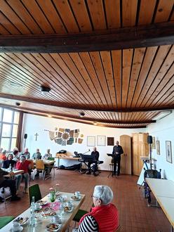 Ein besonderes Highlight des Nachmittags war der Besuch von Herrn Spang und Herrn Oster aus Herforst. Die beiden Gäste brachten mit ihren musikalischen Beiträgen Schwung in die Runde und luden die Anwesenden zum gemeinsamen Singen bekannter Lieder ein. Die gute Laune war ansteckend, und es wurde viel gelacht. Für diese unterhaltsamen Stunden bedanken wir uns herzlich bei den beiden!