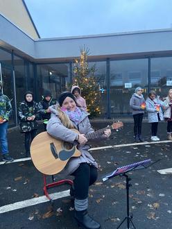 Jeden Montagmorgen im Advent traf sich die gesamte Schulgemeinschaft der Grundschule um den Tannenbaum auf dem Schulhof und stimmte sich gesanglich in die vorweihnachtliche Zeit ein.