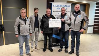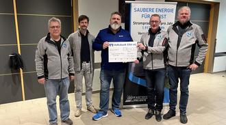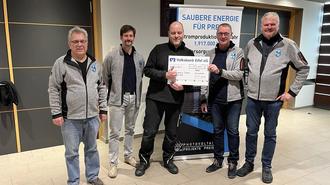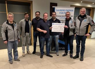 Das Bild zeigt die Übergabe an die Jugendgruppe Preist. Zu sehen sind v.l.n.r. Ortsbürgermeister Dr. Edgar Haubrich, Aufsichtsratsmitglied Stefan Krein, Vorsitzender der Jugendgruppe Sascha Hogen, Vorstand der Photovoltaik Projekte Preist AöR Hans-Peter Schmitz und der 1. Beigeordnete Stefan Willwerding.