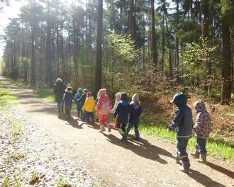 In der ersten Maiwoche tauschten die Kinder und Erzieherinnen aus den Kooperationsgruppen BLAU, GRÜN und ROT an zwei Vormittagen ihre Gruppenräume gegen den Erlebnisraum Wald.