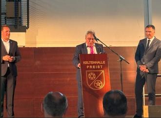 Einer der Höhepunkte des Besuchs war der Festabend am Samstag in der Preister Keltenhalle. Vor Beginn des Abends legten die Gäste Blumen am Grab von Norbert Schröder nieder, der die Partnerschaft mit der Verbandsgemeinde Speicher begründete.