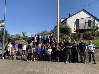 Die Freiwillige Feuerwehr Preist lud die Schüler der Grundschule zum Schmücken des Maibaumes ein. Voller Vorfreude wanderten die Kinder gemeinsam mit den Lehrkräften zur Feuerwehr. Dort angekommen wirkten alle tatkräftig beim Schmücken des Baumes mit. Insbesondere das anschließende Aufrichten des schön geschmückten Baumes mithilfe eines Hubladers bestaunten sowohl die Schüler als auch die Lehrkräfte.