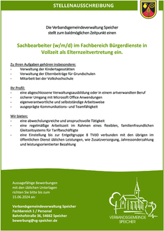 Stellenausschreibungen der Verbandsgemeinde Speicher