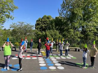 Eine ganz besondere Überraschung erwartete die Schulgemeinschaft der Grundschule Spangdhalem am Morgen des 02.05.2025: In der sogenannten „Hexennacht“ vom 30.04. auf den 01.05. hatten die Maibaum-Jungen aus Spangdahlem ein farbenfrohes „Mensch-Ärger-Dich-Nicht!“-Spielfeld auf den Schulhof „gezaubert“. Ein Geschenk an die Kinder der gesamten Dorfgemeinschaft.