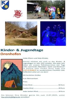 wie bereits angekündigt, finden auch dieses Jahr wieder unsere Kinder & Jugendtage statt. Die 24. Auflage Orenhofener Kinder & Jugendtage findet von Donnerstag, 31.07.2025 bis Sonntag, 03.08.2025 statt.