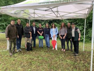 Am zweiten Austragungstag folgten trotz des vorübergehend einsetzenden Regens einige Ehrengäste der Einladung des Forstamtes, um sich selbst ein Bild von den diesjährigen Waldjugendspielen zu machen. Der gemeinsame Rundgang endete an der neuen Umweltbildungsstätte im Königswäldchen (bisherige Grillhütte), die 2025 ihrer neuen Zweckbestimmung übergeben wurde und als neu gestaltetes „Waldklassenzimmer“ von Kitas´s und Grundschulen genutzt werden kann (Vorreservierung online über das Forstamt Bitburg über Umweltbildung.Bitburg@wald-rlp.de).