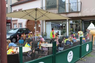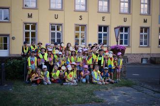 Aber als allererstes stärkten sich alle bei einem leckeren Picknick auf dem Spielplatz. Im Anschluss daran gab es eine große Vorstellungsrunde und die Vorschulkinder wurden in zwei Gruppen aufgeteilt. Ausgestattet mit ihrem Proviant ging es dann auch schon los in Richtung Marktplatz, von dort aus machte sich Gruppe 1 auf den Weg zum Museum, während sich aus Gruppe 2 jedes Kind ein Bällchen Eis aussuchen und genießen durfte. Im Museum haben unsere zukünftigen ABC-Schützen ganz begeistert den Unterschied zwischen der Schule früher und heute kennengelernt. Nachdem die beiden Gruppen getauscht hatten fing es auch schon an dunkel zu werden und alle machten sich auf den Weg zurück zur Kita.