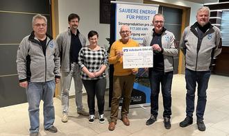 Das Bild zeigt die Übergabe an die Preister Möhnen. Zu sehen sind v.l.n.r. Ortsbürgermeister Dr. Edgar Haubrich, Aufsichtsratsmitglied Stefan Krein, Vorstand der Möhnen Elisabeth Blitsch, Vorstand der Photovoltaik Projekte Preist AöR Hans-Peter Schmitz und der 1. Beigeordnete Stefan Willwerding.