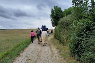 Danach hieß es aufsatteln und aufsteigen. Der Ausritt führte uns eine ganze Stunde vom Hof in den Wald. Die Kinder genossen es sehr, bergauf und bergab von den braven Vierbeinern getragen zu werden. Hierbei wurde abwechselnd geführt und geritten. Alle Kinder haben sich sogar getraut eine Strecke zu traben.