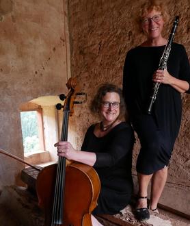 Das Duo Catrin Stecker (Klarinette) und Angela Simons (Violoncello) untermalt die Stationen musikalisch