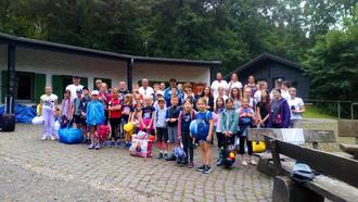 In Stadtkyll angekommen wurden die Kinder und Jugendlichen von den bereits angereisten Betreuern*innen und dem Ortsbürgermeister begrüßt. Danach wurden die Kinder und Jugendlichen in die jeweiligen Gruppen mit ihren Betreuern*innen eingeteilt und die geräumigen Hütten bezogen. Auch wurden die Gruppen für die am Freitag und Samstag stattfindende Camp-Olympiade festgelegt.
