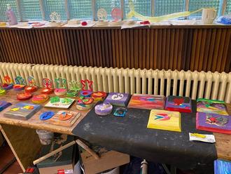 Die Kinder konnten aus Gips hergestellte Windlichter farblich gestalten oder kleine und große Holztafeln anmalen und dann mit aus Gips gegossenen Figuren bekleben und anmalen. Außerdem wurden mit zugeschnittenem und beklebtem Pappkarton tolle Flugzeuge gebastelt und farblich gestaltet. Eine schöne Erinnerung an die Kinder-und Jugendtage 2024.