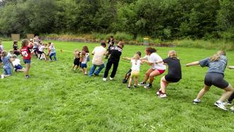 Tauziehen auf der großen Spielwiese - immer wieder ein Höhepunkt!