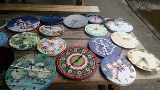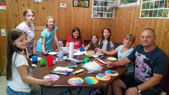 Der Vormittag wude genutzt um mit Matthias und Raimund zu basteln. Aus den mitgebrachten Keksdosendeckeln bastelte Raimund mit den Kindern dekorative Wanduhren.
