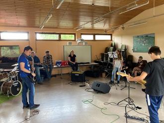 Die Band der mobilen Jugendarbeit steuert auf ihren ersten Auftritt zu! Samstag den 10.09 fand der finale Probetag in Bickendorf statt, um die regelmäßigen Probeabende im Haus der Jugend vor dem Auftritt am 18.09.22 auf dem Familienfest des Haus der Jugend Bitburg abzurunden. Der offene Musiktreff ist ein Kooperationsprojekt der mobilen Jugendarbeit der Stadt Bitburg, VG Speicher und Bitburgerland. Vertreten sind für unsere VG Robert Mathey am Bass, Raphael Hacken an der