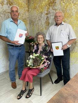 Für die Verbandsgemeinde Speicher gratulierte Beigeordneter Oswald Krumeich, ebenso wie Stadtbürgermeister Erhard Hirschberg, überreichten Präsente und Urkunden und wünschen der Jubilarin weiterhin Wohlbefinden, Gesundheit und allzeit Gottes Segen.