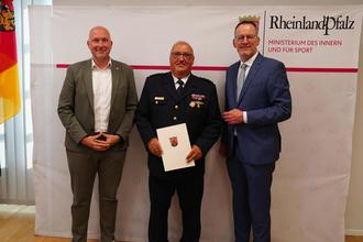 „Das Goldene Feuerwehr-Ehrenzeichen als Steckkreuz wird an Personen verliehen, die im Feuerwehrdienst außerordentliche Verdienste mit überregionaler Bedeutung erbracht und damit die Feuerwehr nicht nur in den kreisfreien Städten und Landkreisen, sondern im gesamten Land Rheinland-Pfalz maßgeblich mitgestaltet haben. Dieser Einsatz für das Gemeinwohl verdient höchsten Respekt und Anerkennung“, betonte Innenminister Michael Ebling.