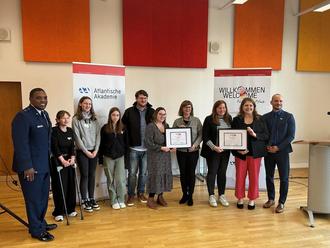 Für die enge Zusammenarbeit mit US-Schulen an nahegelegenen US-Standorten zeichnete Frau Staatssekretärin Nicole Steingaß, Brigadegeneral Otis Jones, Kommandeur der Ramstein Air Base, sowie WiR!-Programmkoordinator, John Constance, unser Genossenschaftliches Gymnasium Speicher vergangenen Freitag in Kaiserslautern als "WiR!-Schule" in Rheinland-Pfalz aus. Die Ehrung erfolgte im Rahmen des Landesprogramms „Willkommen in Rheinland-Pfalz! Unsere Nachbarn aus Amerika“ (WiR!) und würdigt die enge Zusammenarbeit zwischen den beteiligten Bildungseinrichtungen zur Förderung des deutsch-amerikanischen Austauschs.