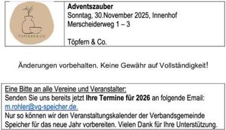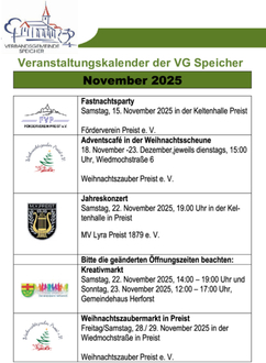 Rathaus Speicher: Korrektur Veranstaltungskalender, November 2025