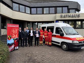 vorne sitzend von links nach rechts: Vorsitzender Patrick Zenzen und Bürgermeister Marcus Konrad; hinten stehend von links nach rechts: Lea Röhle, Jonas Knebel, Alexander Schmitt, Fachbereichsleiter Raphael Ney, Stv. Wehrleiter Marc Meiers sowie Wehrleiter Holger Thomsen