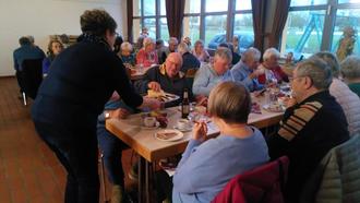 Über vierzig Senioren*innen trafen sich zum gemütlichen Beisammen-sein und wurden von unserem Helferteam und dem Ortsbürgermeister herzlich willkommen geheißen.