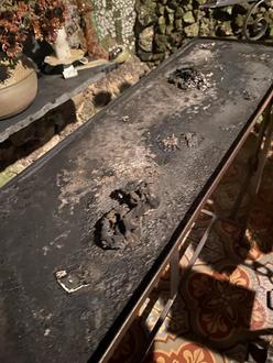Das Deckengewölbe und die Muttergottes-Statue sind stark verrußt. Die Wiederherstellung der Decke aus Lavasteinen gestaltet sich sehr schwierig, falls sie überhaupt möglich ist. Auch Kerzenständer sowie der gesamte Innenraum sind stark in Mitleidenschaft gezogen.