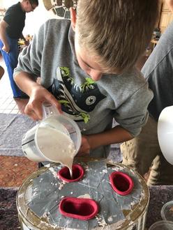 Am ersten Samstag wurden zunächst zwölf Figuren, die zu jeder Krippe gehören, aus Gips gegossen. Dafür wurde Gipsmasse durch die Kinder fleißig angerührt und in die bereitgestellten Formen gegossen. Nach einer Aushärtungszeit wurden die Figuren mit aller Vorsicht aus den Formen heraus gelöst und zum Trocknen auf die Seite gestellt.