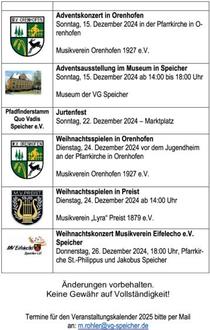Veranstaltungskalender Dezember 2024