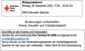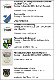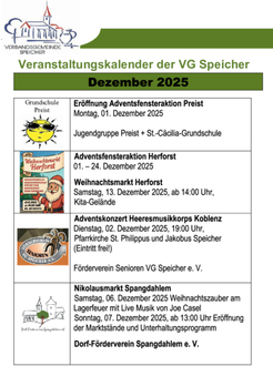 Rathaus Speicher: Veranstaltungskalender, Dezember 2025